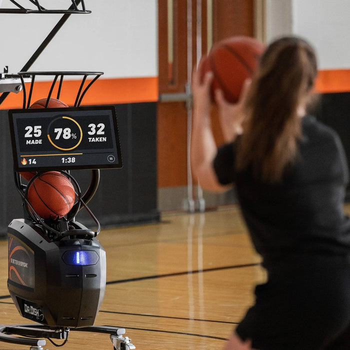 - Massive 21.5” touchscreen — the biggest in basketball shooting machines