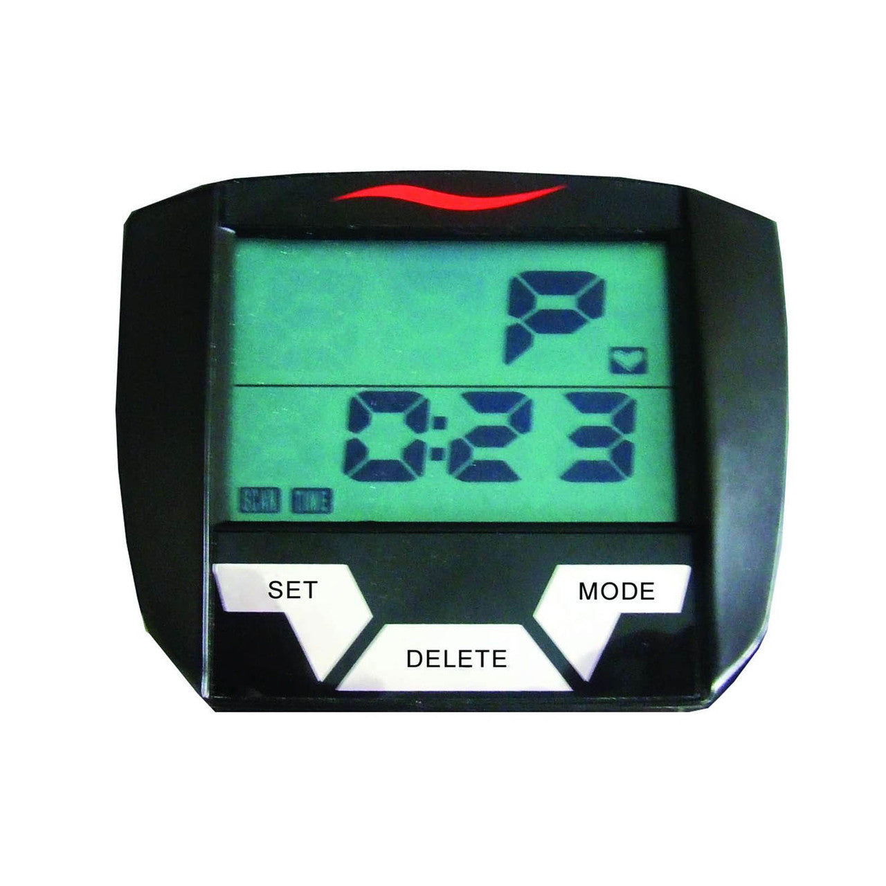 The compact computer with LCD display shows all relevant workout data such as heart rate, speed and distance and comes with an integrated heart rate receiver for chest straps. Heart rate can also be measured using the ear clip.