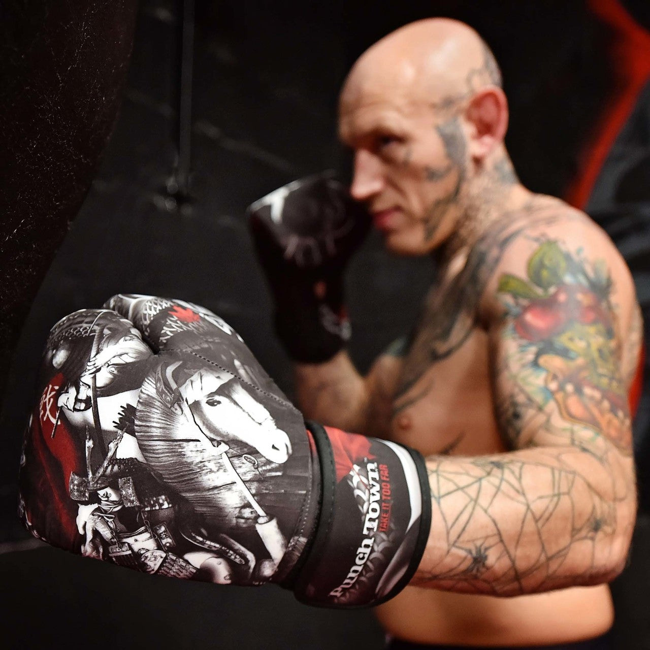 PunchTown Oni Battle Washable Gloves present the latest in boxing glove sublimation technologies with the striking Oni Battle design!