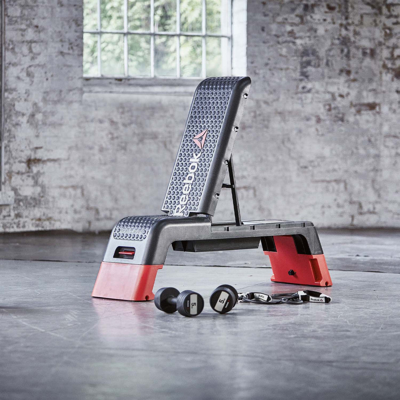 The reconfigurable Reebok Deck broadens your workout options for total home training; providing all the tools needed for limitless workouts.