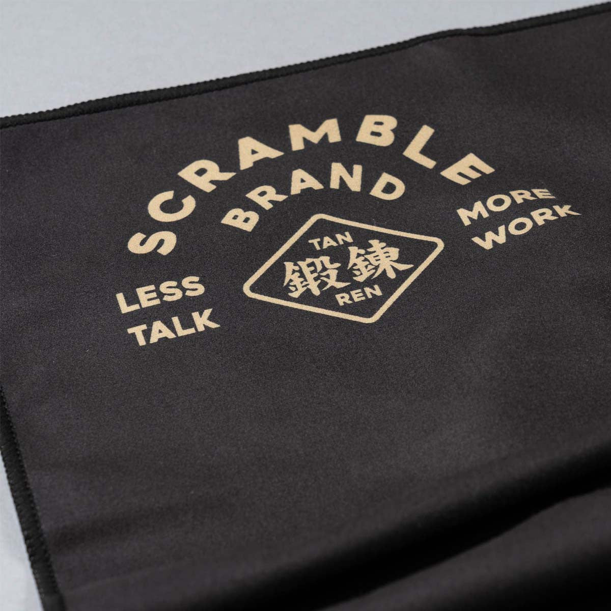 Scramble Brand Less Talk More Work Microfibre Towel - Black is backordered and will ship as soon as it is back in stock.