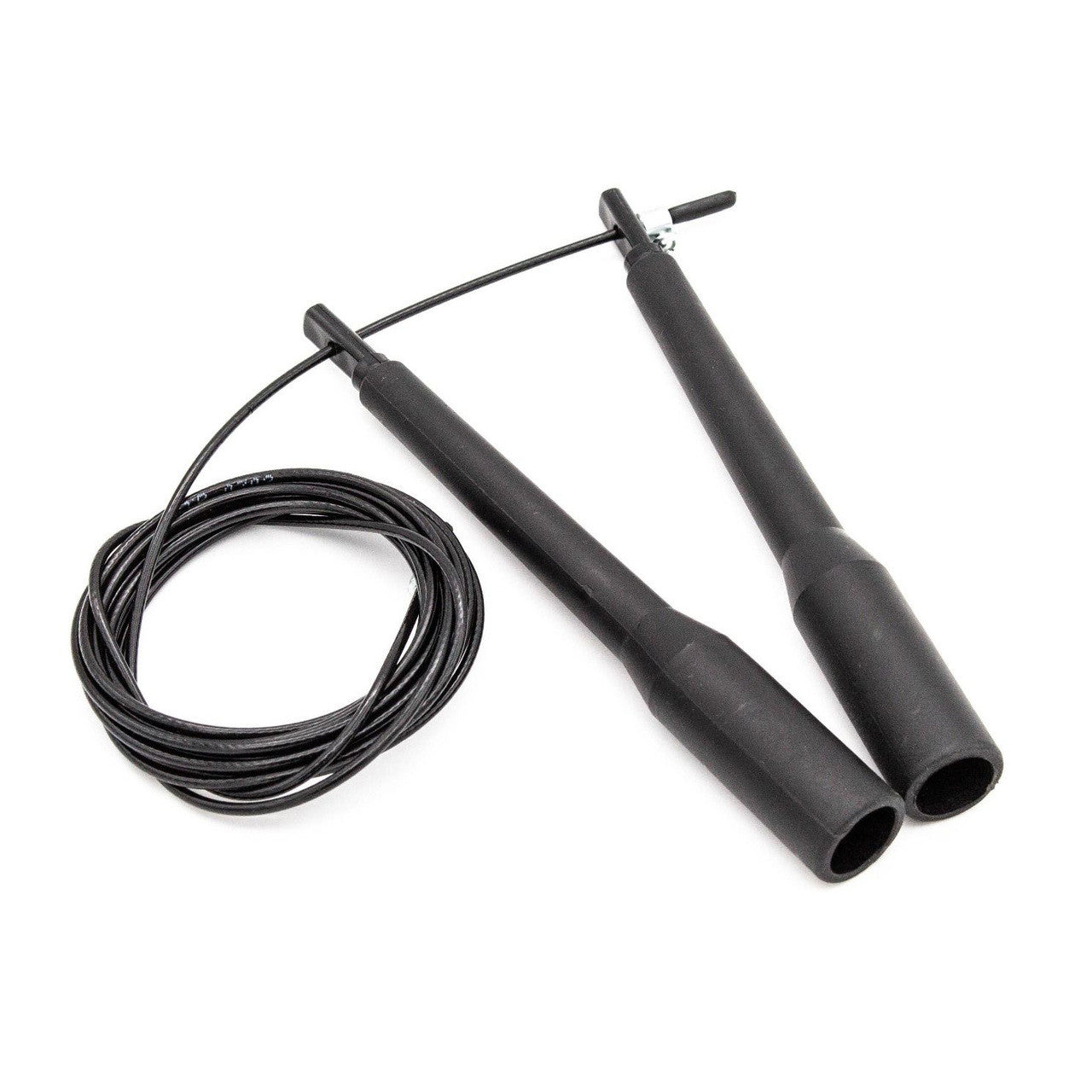 This plastic-coated steel wire is individually adjustable to the body size or needs of the athlete. Lightweight nylon handles with integrated bearings allow fast rotation and prevent twisting of the rope during use. The rope, which is about 275 cm long at delivery, can be shortened to the optimum length for the athlete, so you can use it quickly at any time.