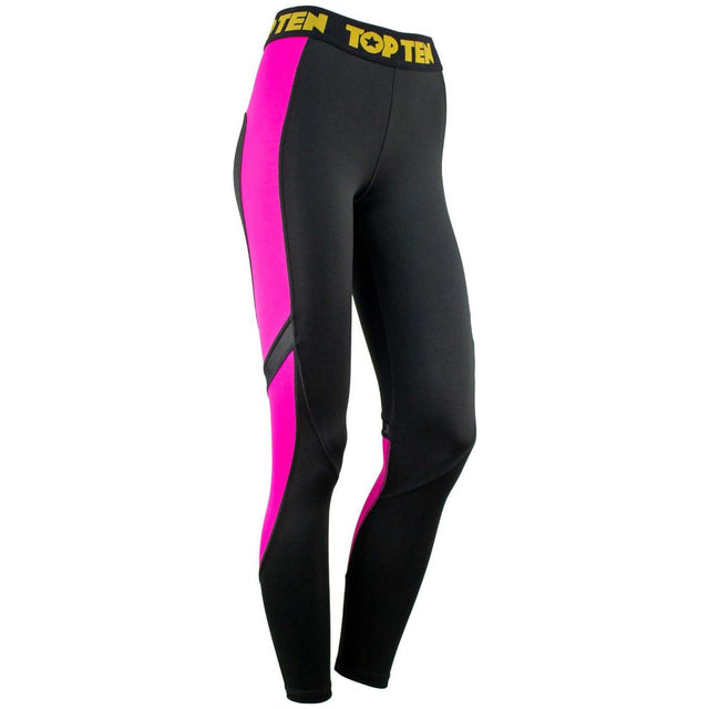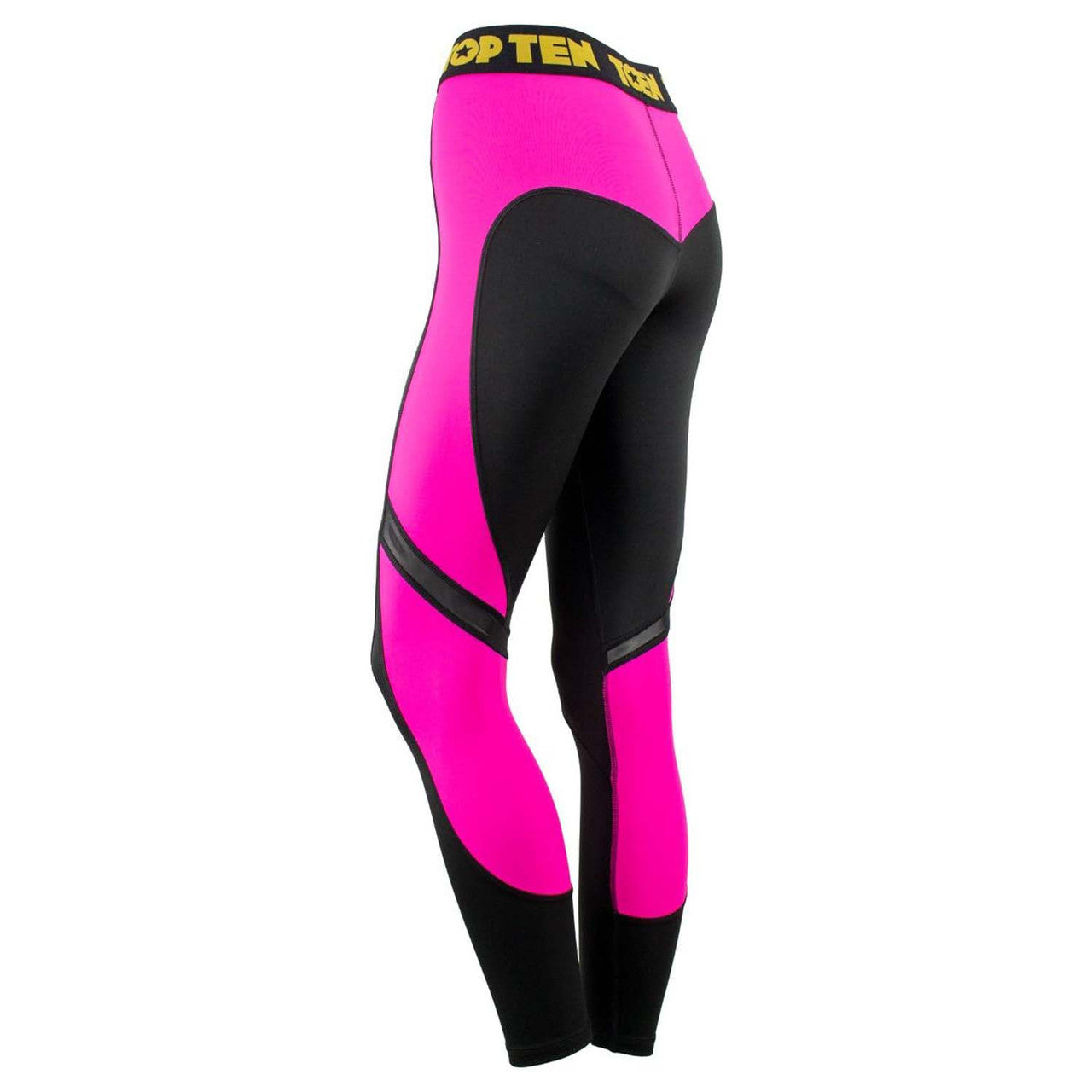 Top Ten Ladies Fitness Leggings in Black/Pink fit like a second skin and the lightweight compression effect improves muscles support. These leggings include mesh strips helping air circulation and improving wearing comfort.